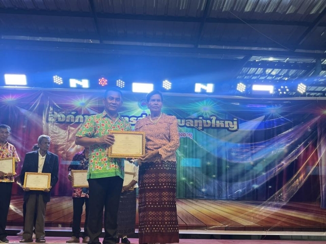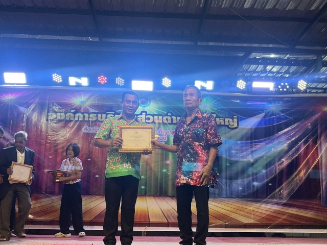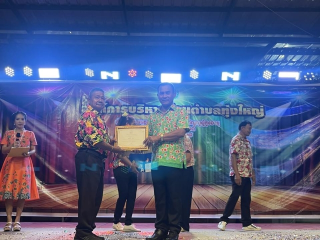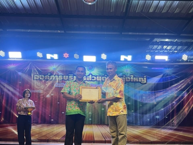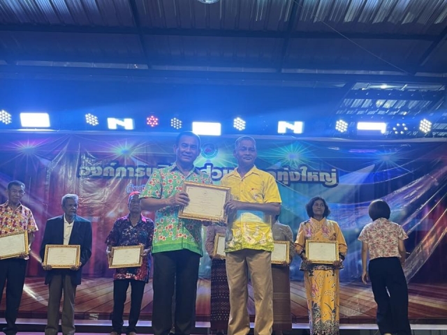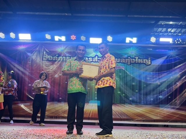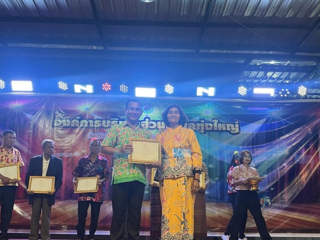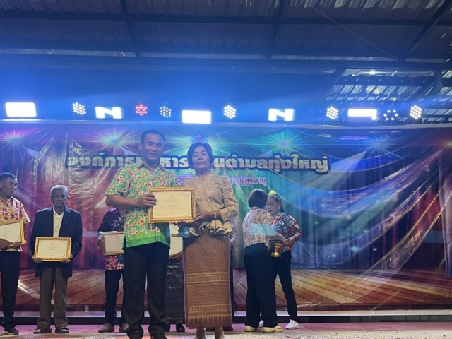 ร่วมรับชมการแสดงกิจกรรมต่าง ๆ บนเวที และประธานในพิธีมอบเกียรติบัตรให้แก่ผู้สูงอายุเพื่อเชิดชูเกียรติและเป็นแบบอย่างที่ดีให้กับชุมชน “คนทรงคุณค่า ถิ่นทุ่งใหญ่”